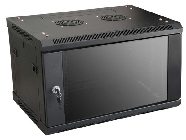 6U, rack cabinet (600 x 450mm) is designed for wall mounting in offices, server rooms and CCTV installation control rooms. The outer walls are made of cold-rolled steel sheet. The front door has tempered glass and it can be opened to the left or right side. The kit includes a set of keys, square M6 nuts for rack rail, rack cabinet mounting set and a full set of screws.