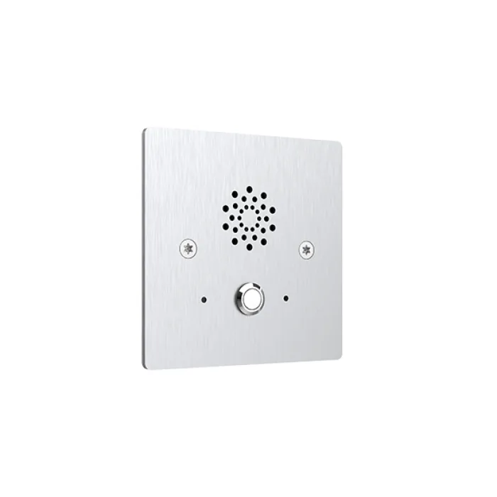 E20S is a compact SIP emergency intercom that is ruggedized with 316-grade stainless steel. It is designed for indoor use and is compatible with 1299 and 86 type single in-wall boxes.
