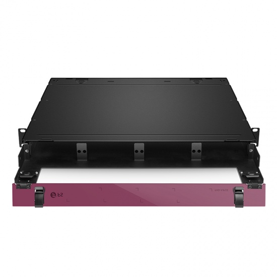 FHD 1U rack mount sliding fiber enclosure, which is designed to accept up to 4 FHD series MTP modular cassettes or fiber adapter panels within a 1U space. It is able to serve as a transition from backbone cabling to distribution switching, an interconnect to active equipment, or as a cross-connect or interconnect in a main or horizontal distribution area.