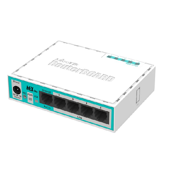 hEX lite is a small five port ethernet router in a nice plastic case.