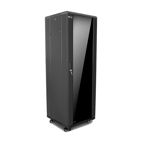 Opterna floor standing steel cabinets are robust and flexible cabinets that can be configured to suit a wide range of equipment types and applications. Perforated steel doors provide excellent cold air circulation through the rack and internal mounting rails can be adjusted to suit different equipment types and depths.