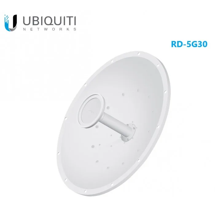 RD-5G30 is a Ubiquiti Networks RocketDish parabolic dish antenna. Designed to work with Rocket M5 radios, it operates on 5GHz spectrum at 30dBi gain.